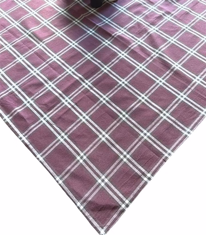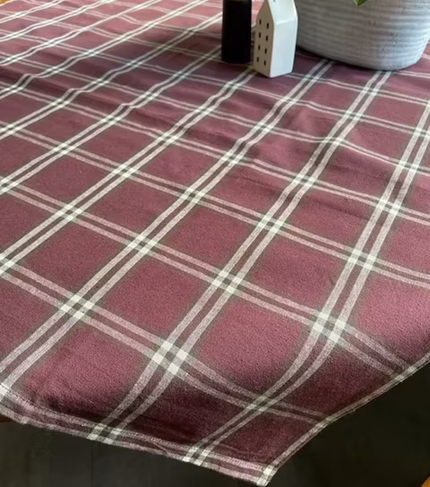 6922 en vävd duk från Svanefors. Färg: Vinröd med gräddfärgade och bruna rutor.