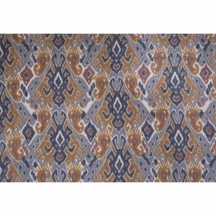 Eva en färdigsydd gardinkappa med öljetter. Färg: Multifärgad kappa i rost, grå, blå färger.