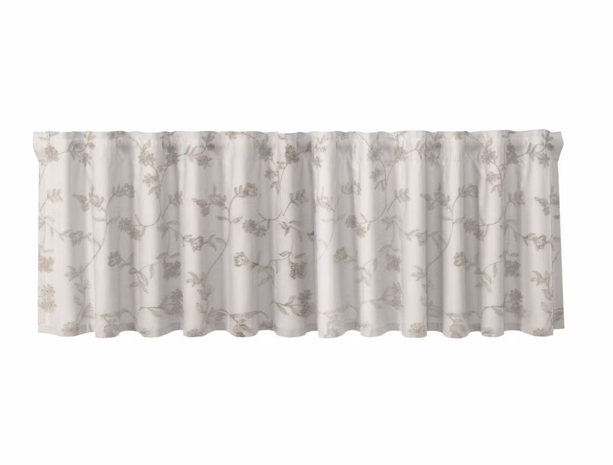 Ellie vit/linne blommig broderad gardinkappa multiband Redlunds textil