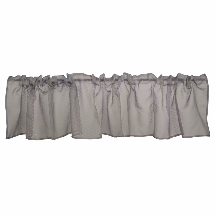 Beskrivning: Rut är en tunn och skir gardinkappa med Med ett mönster av vävda grå fyrkanter.