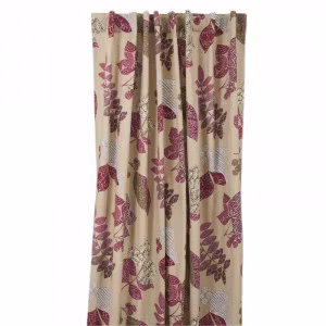 Marit ett linnefärgat gardinset med vinröda och grå blad och dolda hällor från Boel & Jan, mått 2 x 145 x 240 cm.