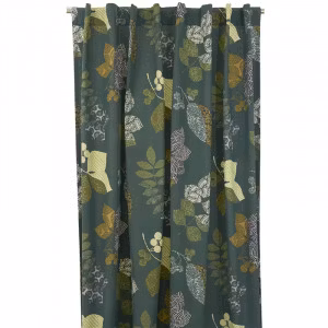 Marit ett grönt gardinset med gröna och svarta blad och med dolda hällor från Boel & Jan, mått 2 x 145 x 240 cm.