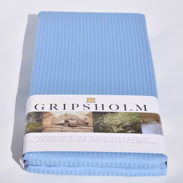 Pauline ett blått bäddset till spjälsäng från Gripsholm i 100% bomull.