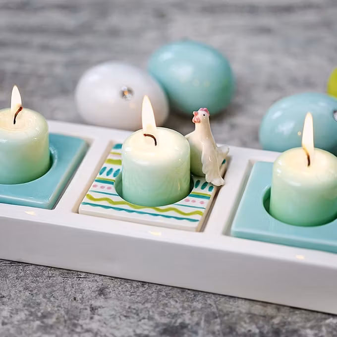Change ägghöna är en ljusmanschett till Changeserien från Cult design. Färg: Vit med rosa, gröna och turkost målade dekorationer.