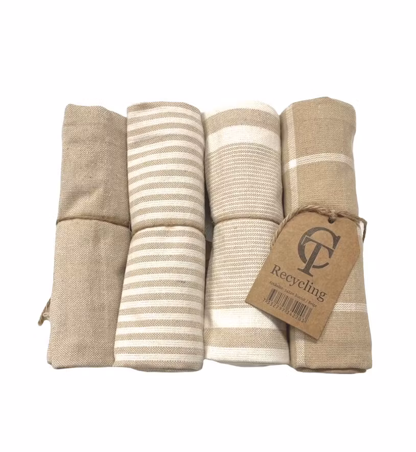 Kökshandduk från Classic textile i återvunna textilier. Färg: Beige och vitrutig.