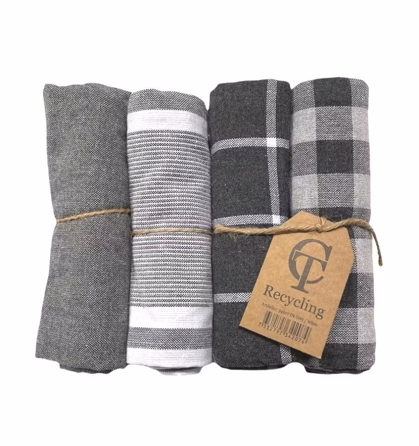 Kökshandduk från Classic textile i återvunna textilier. Färg: Grårutig.