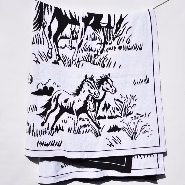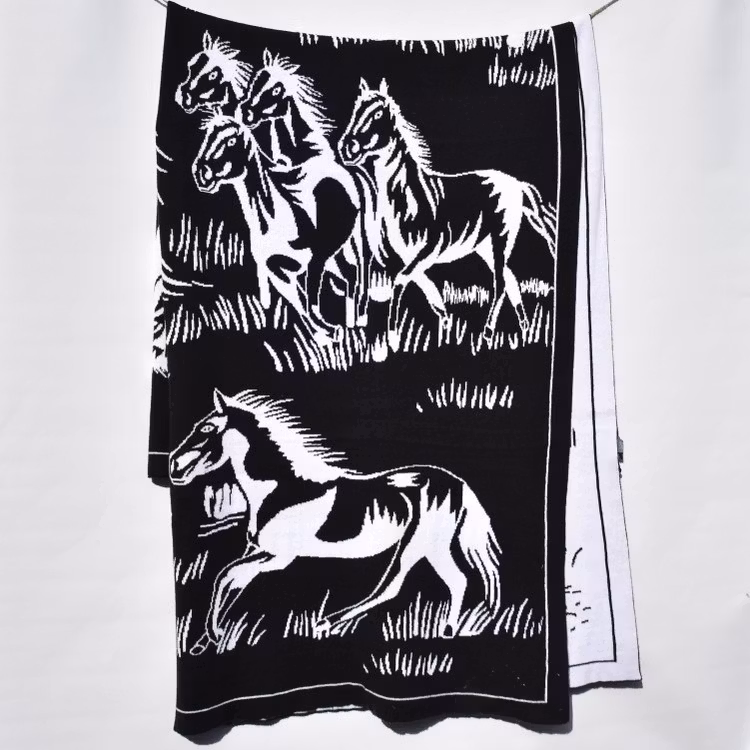 Barnpläd i vitt och svart hästmönster i 100% bomull från Gripsholm, mått 125 x 150 cm. 129 kr Lägg i varukorg Babypläd i vitt och svart från Gripsholm. Färg: Vit och svart.Mått 125 x 150 cm.Material: 100% bomull. Leverantör: Gripsholm