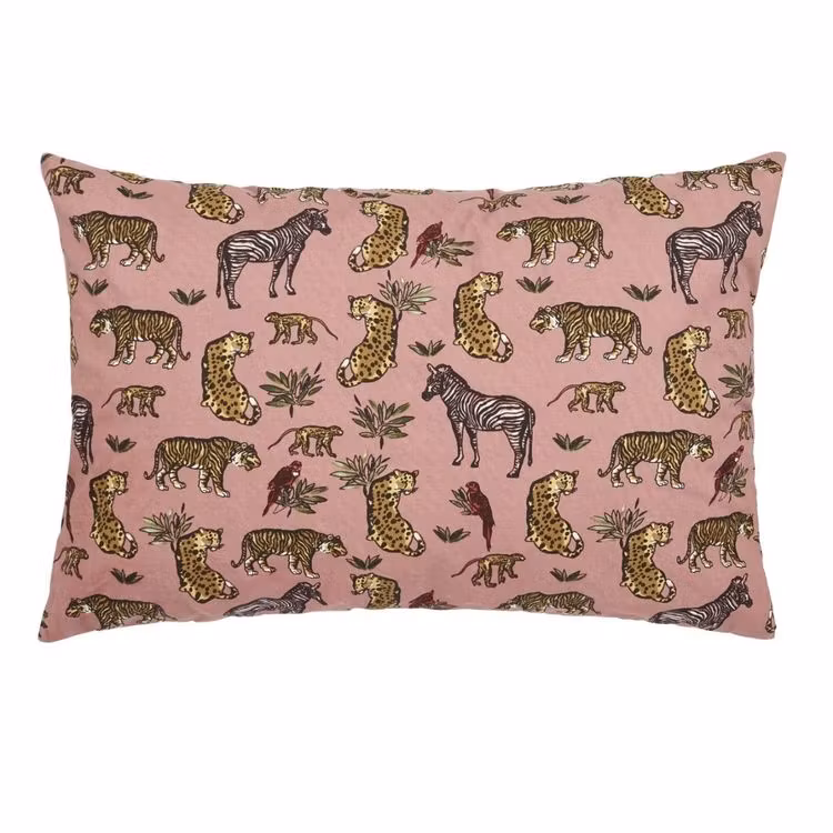 Soft savanna ett kuddfodral med ett djurtryck och en beige baksida. Färg: Rosa.