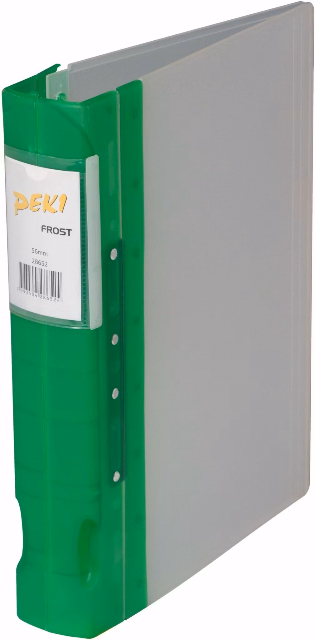 Gaffelpärm PEKI frost en A4 pärm med 4 ringar i limegrönt. 5,6 cm bred rygg från Hedlundgruppen.