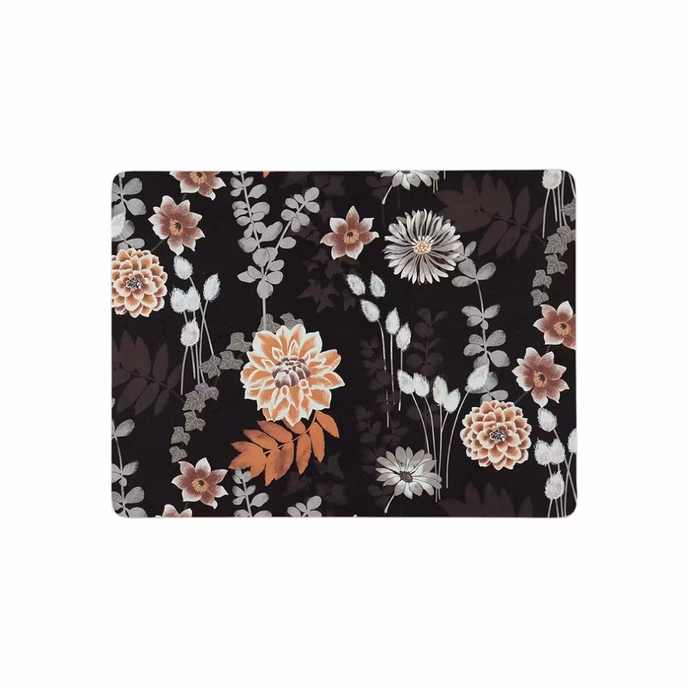 Noble house Corc en bordstablett med ett blommönster på svart botten av MDF och kork i mått 30 x 40 cm