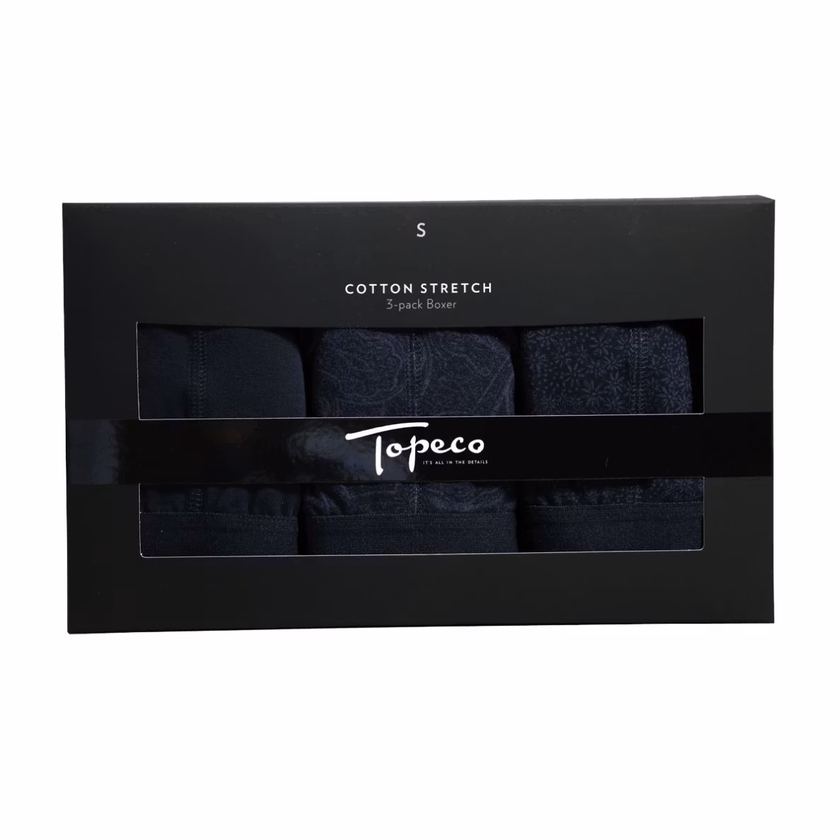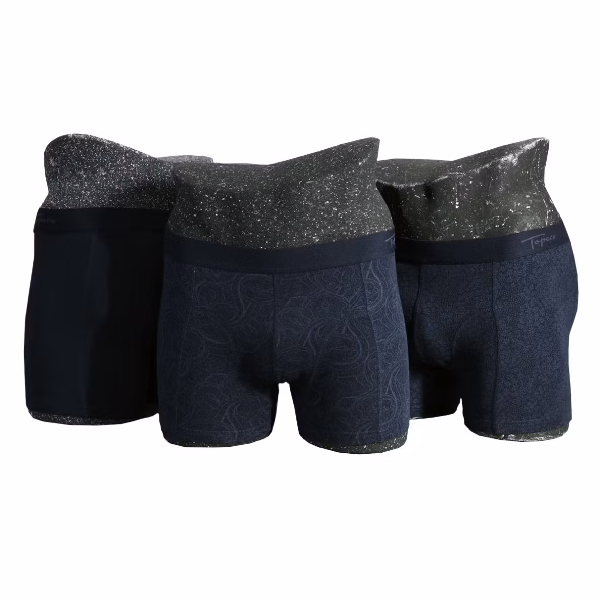 Herrboxer i 3-pack från Topeco. Storlek S. Färg: 2 par blåmelerade och 1 par enfärgade blå.